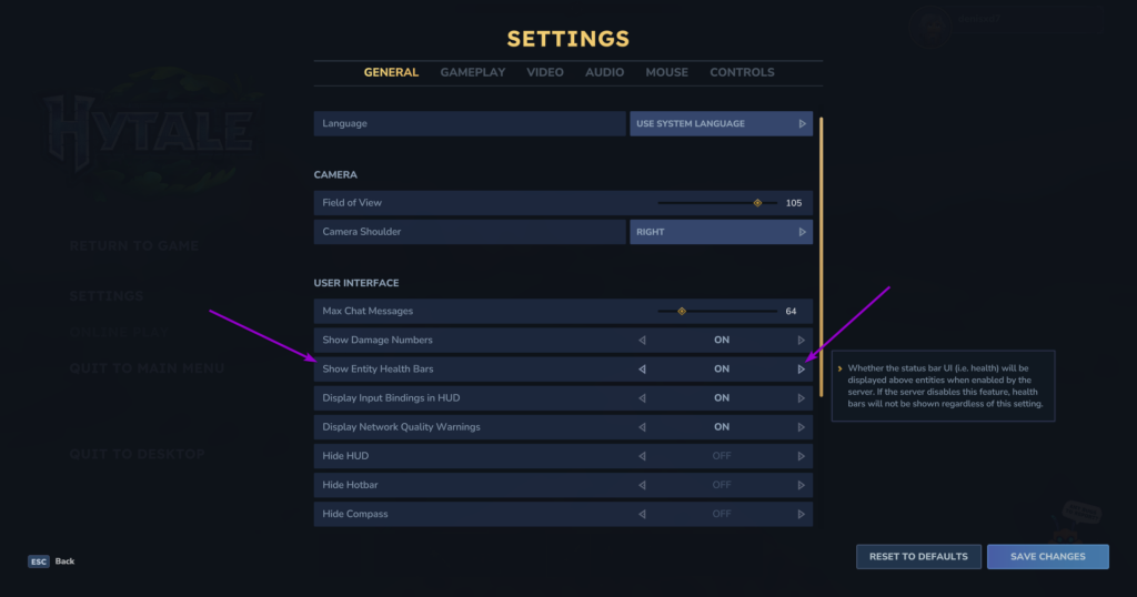 Second, enable “show entity health bars” in your settings. It’s turned off by default, but having it on lets you track enemy health during fights, so you’ll know exactly when they’re about to go down.